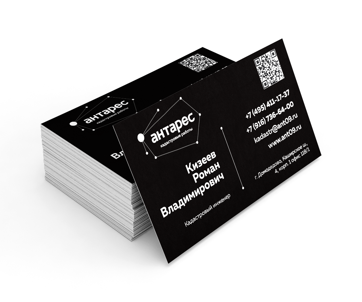 Задача: Разработать дизайн визитки и дверной таблички для кадастровой компании «Антарес».—